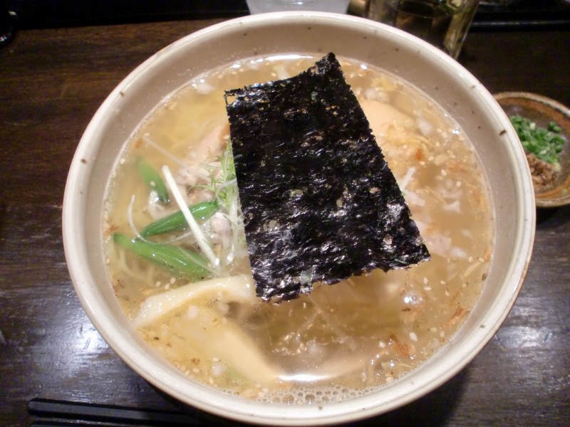 頼んだ白鶏麺はスッキリ鶏スープならーめん。あまり食べない味ですなあ。
